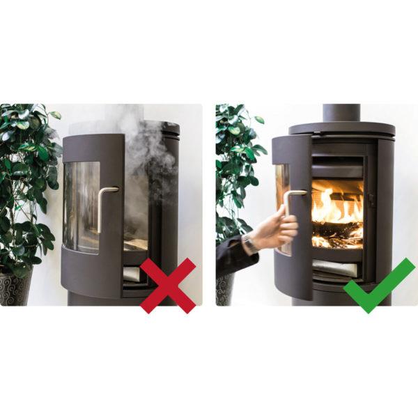 Problemer med optændingen skyldes oftest, at der mangler træk. Draftbooster giver træk i skorstenen lige fra starten og letter dermed optændingen. Trækket i skorstenen skabes af forskellen på den høje temperatur i røgen og den lavere temperatur udenfor. Da skorstenen stadig er kold under optænding, er der ikke altid træk nok, og det kan være svært at få ild i brændeovnen eller pejsen, uden at der kommer røg og dårlig lugt i stuen. Det er dog altid vigtigt, at optændingsbrændet er tørt, og at du starter med små træstykker og pindebrænde. På den måde kan ilden få hurtigere fat og udvikle den varme, der skal til for at skabe et godt skorstenstræk.