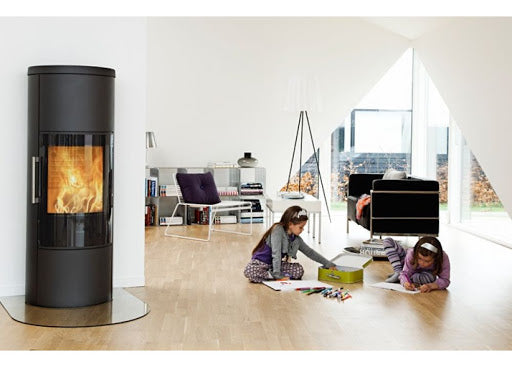 En brændeovn med et intelligent forbrændingsteknik og stort brændkammer.