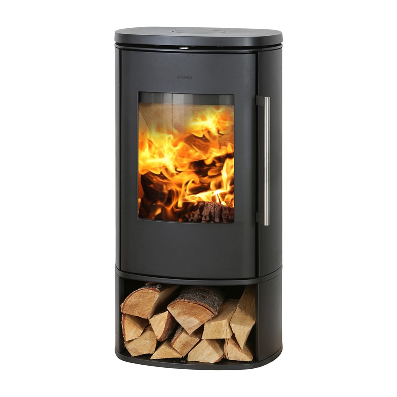 Morsø 8843 med brændemagasin er en effektiv og solid brændeovn med god plads til opbevaring af brænde i bunden af brændeovnen.