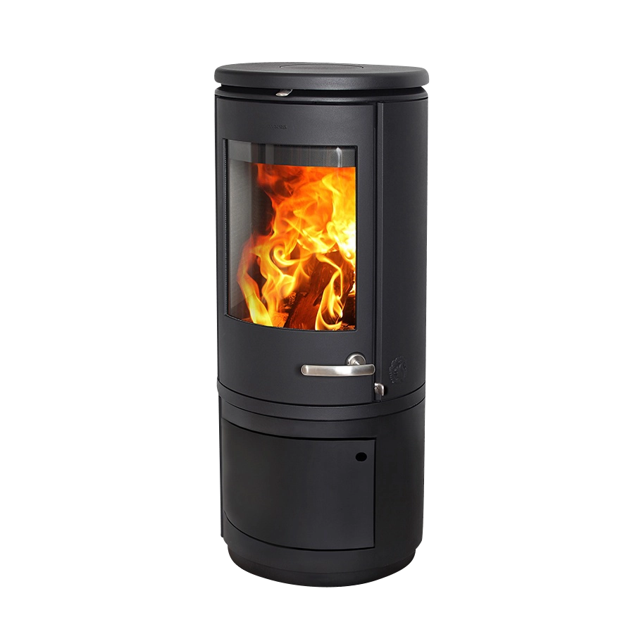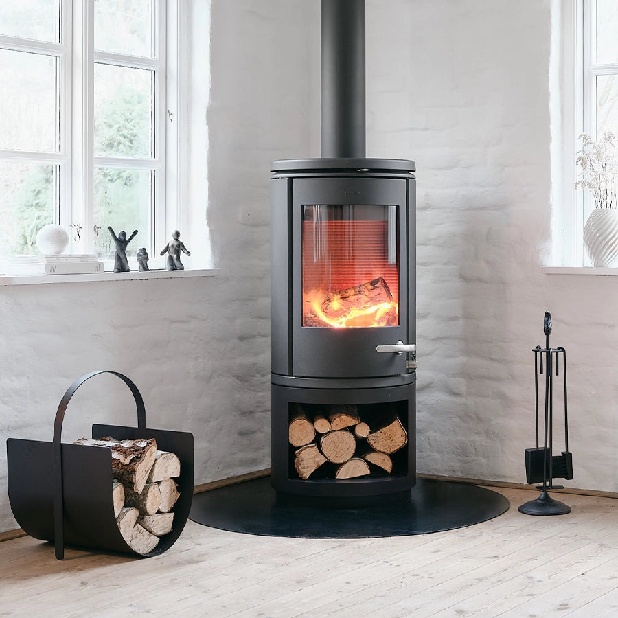 Med magasinlågen til Morsø 7843 er det nu muligt at øge brændemagasinets anvendelighed betydeligt. Den elegant buede låge er tilpasset soklens form og giver mulighed for ”usynlig” opbevaring af div. tilbehør.