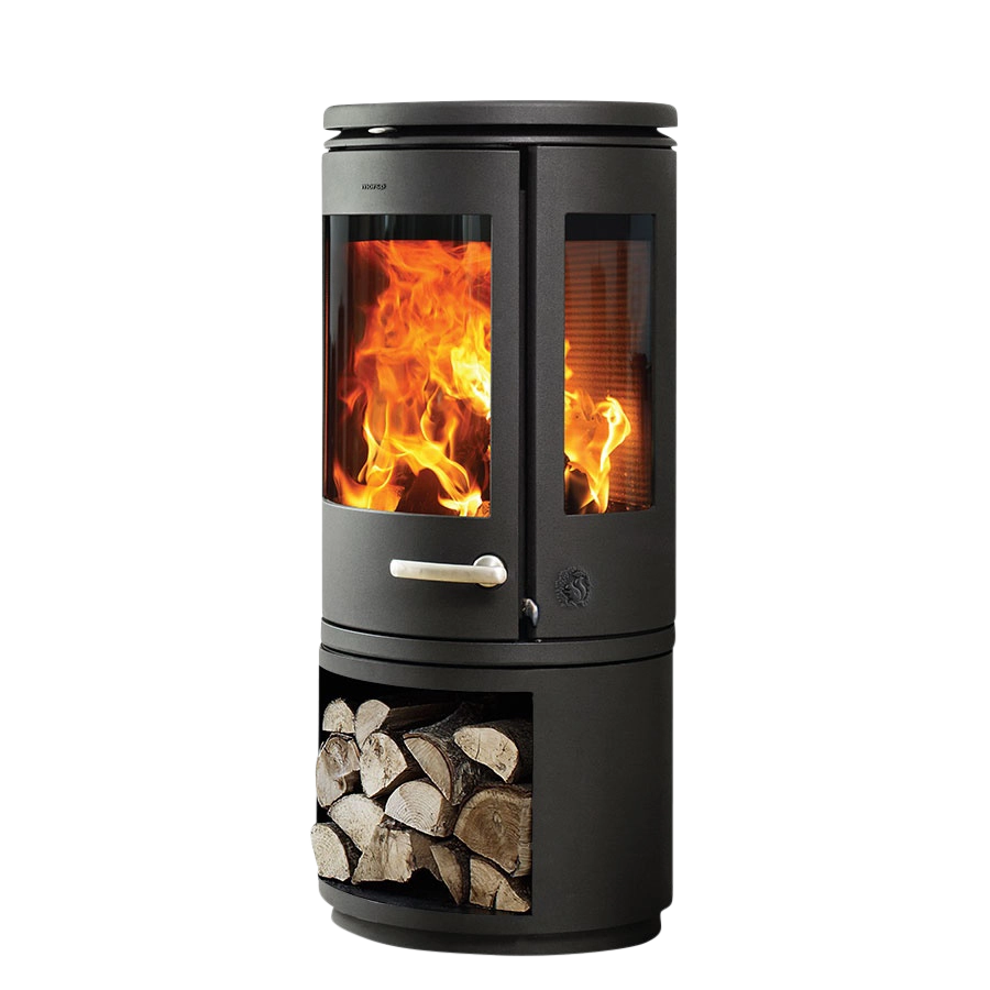 Med magasinlågen til Morsø 7943 er det nu muligt at øge brændemagasinets anvendelighed betydeligt. Den elegant buede låge er tilpasset soklens form og giver mulighed for ”usynlig” opbevaring af div. tilbehør.