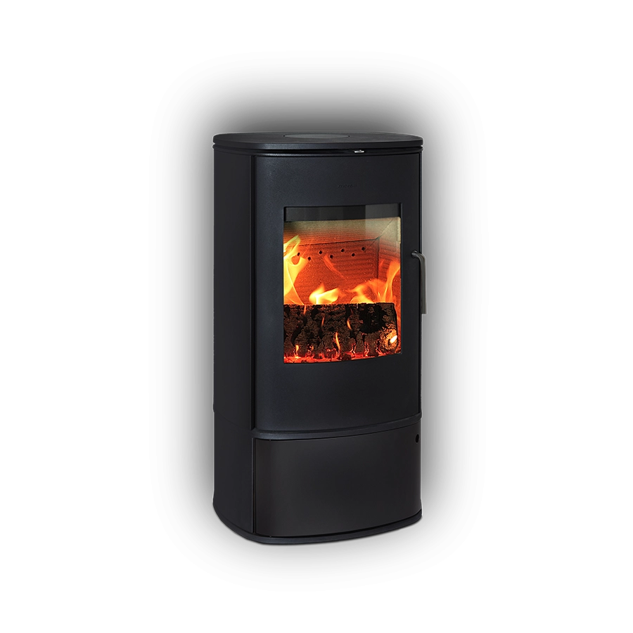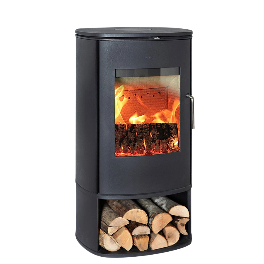 Morsø brændeovn 8143 er en variant til 8100 serien, der, med sit brændemagasin under brændkammeret, giver ovnen et slankt udtryk, og pindebrændet let tilgængeligt.