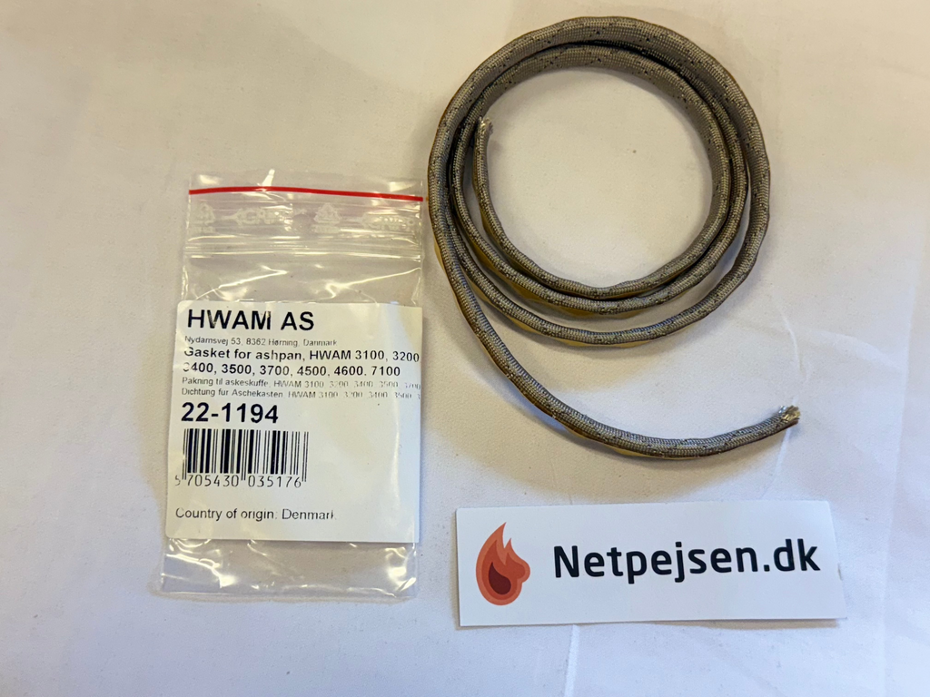 En pakning til askeskuffe der passer til HWAM 3100, 3200, 3400, 3500, 7100-serien brændeovne.