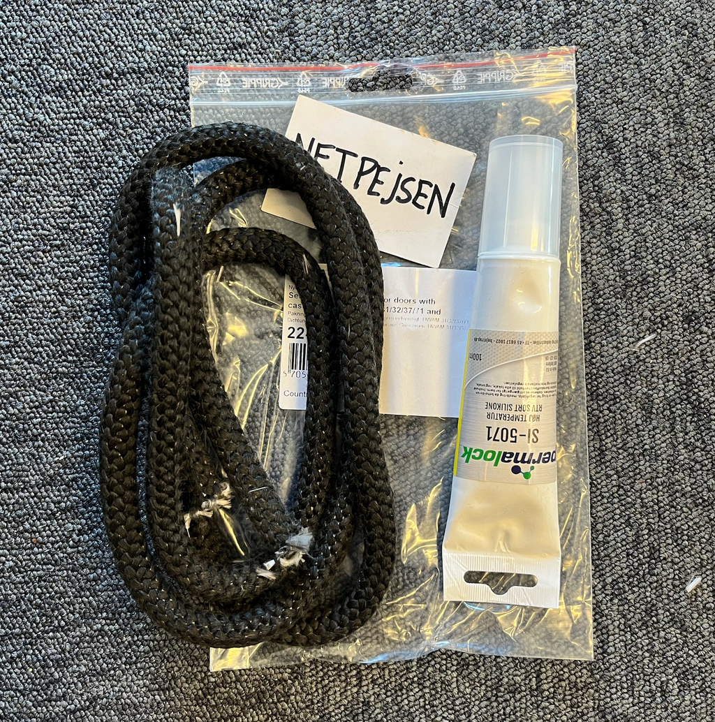 En pakning til låge som passer til HWAM 3100, 3200, 3400, 3500, 3600, 7100-serien brændeovne.