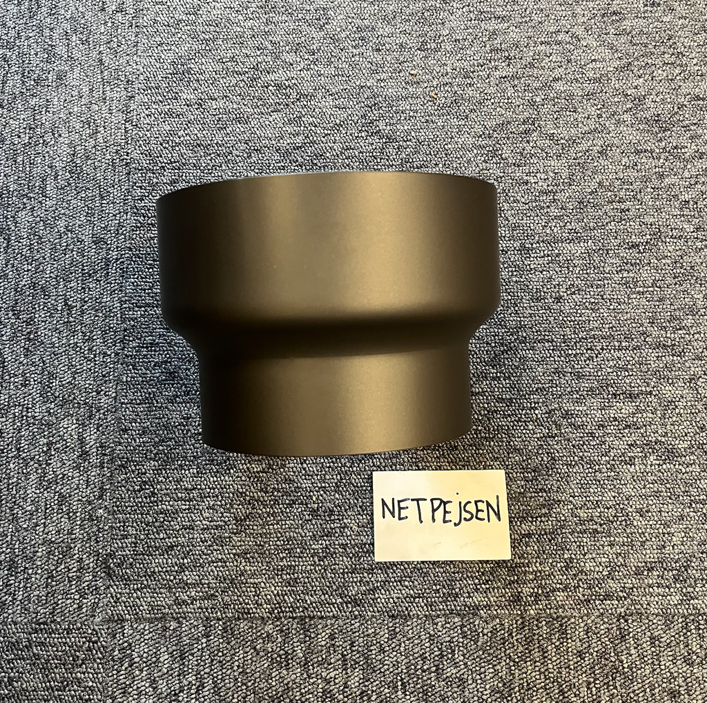 Reduktion til samling af rør i anden dimension. Reduktionen er malet i varmefast maling.