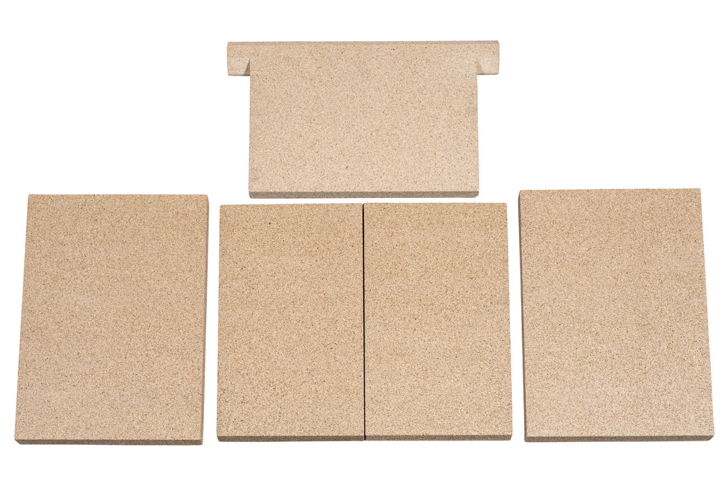 - Rengør brændkammeret grundigt for aske og rester af gammelt vermiculite. Det er vigtigt at sikre et fladt og jævnt underlag til de nye plader.