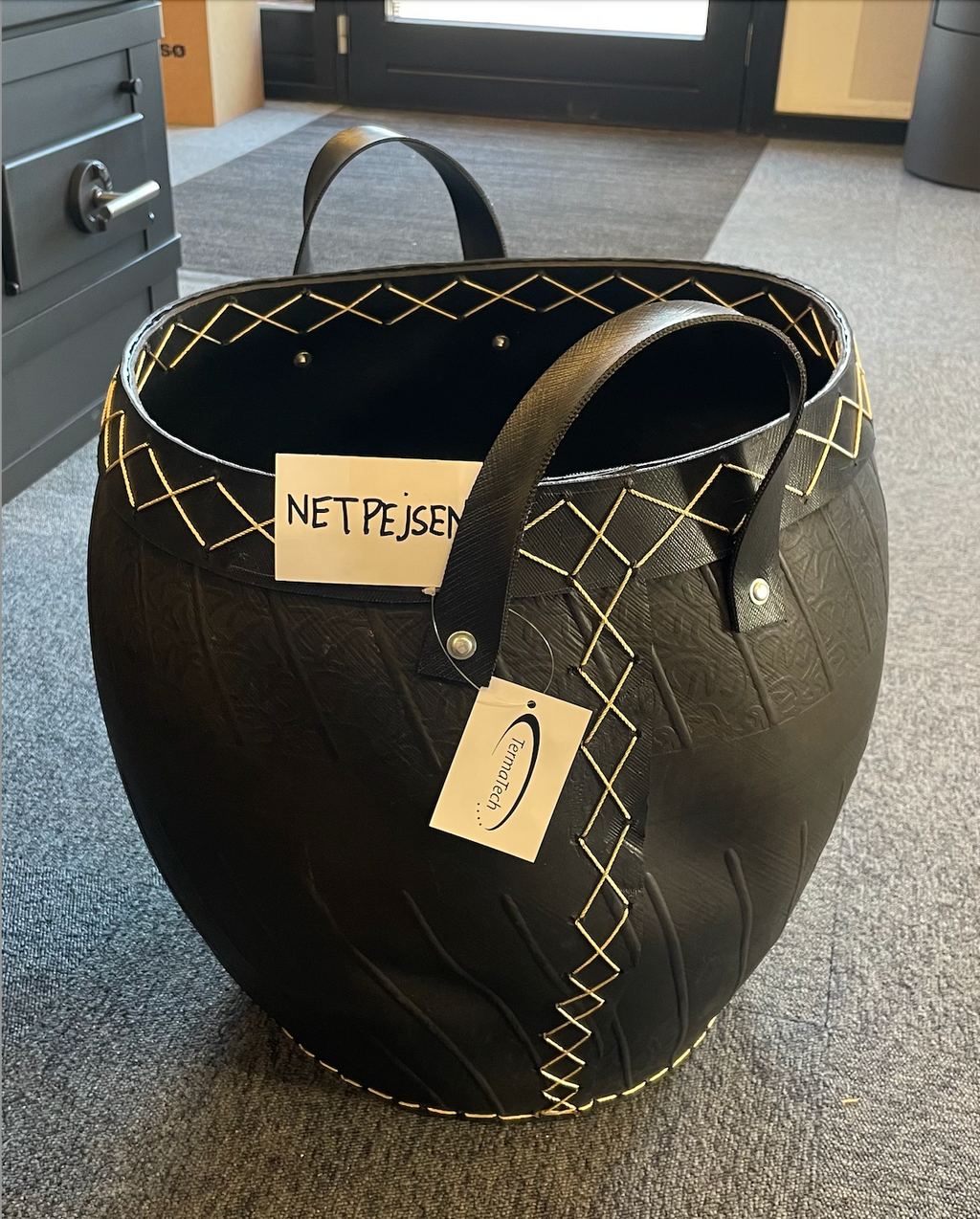 En miljøvenlig brændekurv fra TermaTech som er lavet i kraftig gummi ud af genbrugsdæk. Kan bruges til opbevaring af brænde, træpiller eller andet. Simpelt design med 2 greb der gør den nem at bære.