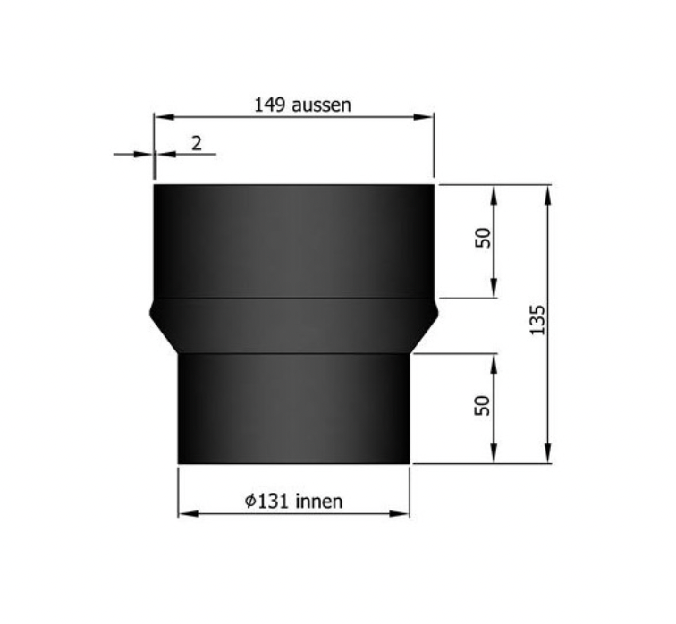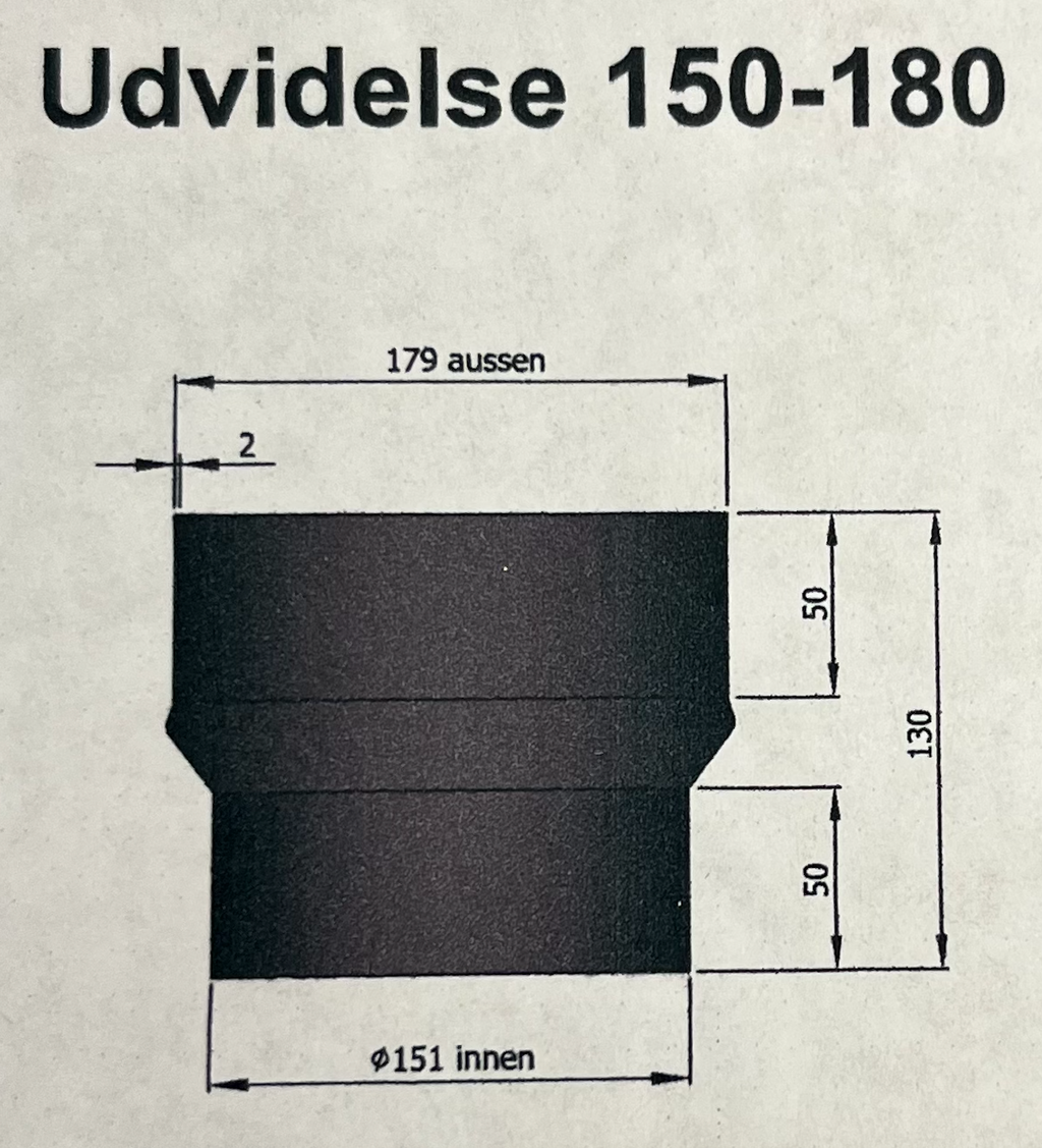 Udvidelsen er lavet af 2mm sortlakeret pladejern med varmebestandig maling. De anvendes til at forbinde en brændeovn med en stålskorsten eller et røgrør.