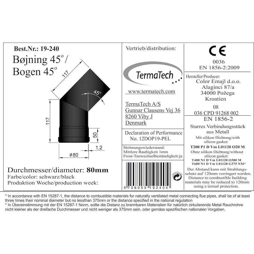 Böj 45 grader med Ø80 mm diameter.