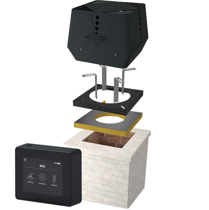 Genom att installera en Exodraft-rökgasfläkt på din skorsten får du enkel och snabb upptändning utan en sotig kamin. Och med fjärrkontrollen i handen kan du styra den från din fåtölj. Således får du full njutning av din vedeldade kamin utan några av nackdelarna.