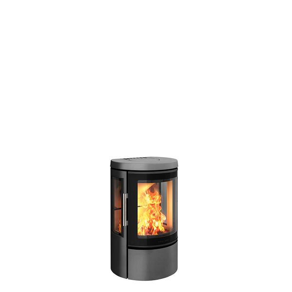 Det är en liten vedspis med breda sidoglas. De eleganta linjerna passar bra in i alla inredningar – från moderna till klassiska.