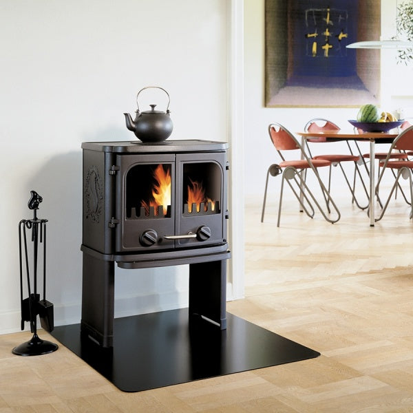 Morsø 2140 vedspis i gjutjärn är lämplig som hemmets primära värmekälla. Kaminen har en extra bred förbränningskammare, vilket innebär att stora vedbitar kan användas. Luckorna är utrustade med stora glasrutor, vilket ger en bra insyn i elden. Morsøs förbränningssystem med fönsterputsning säkerställer att glaset alltid är rent vid korrekt eldning.