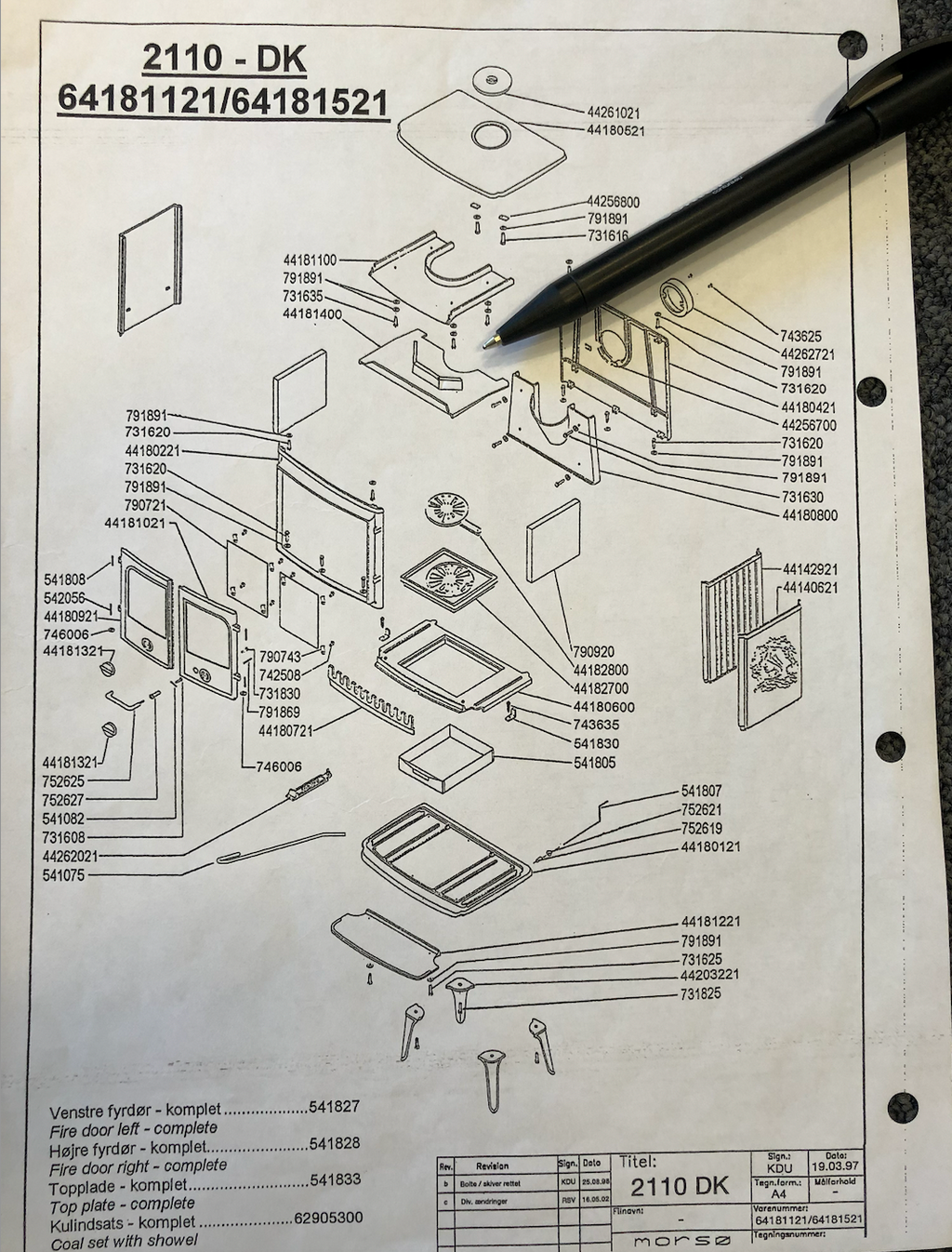 En rökavvisande plåt för Morsø 2110 Gammal modell. Observera den mycket gamla modellen med 2 extra "öron".