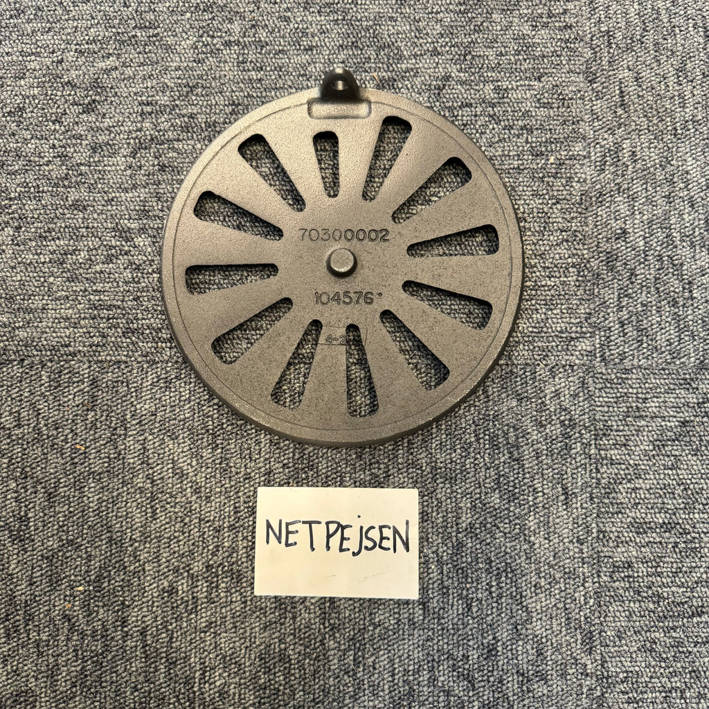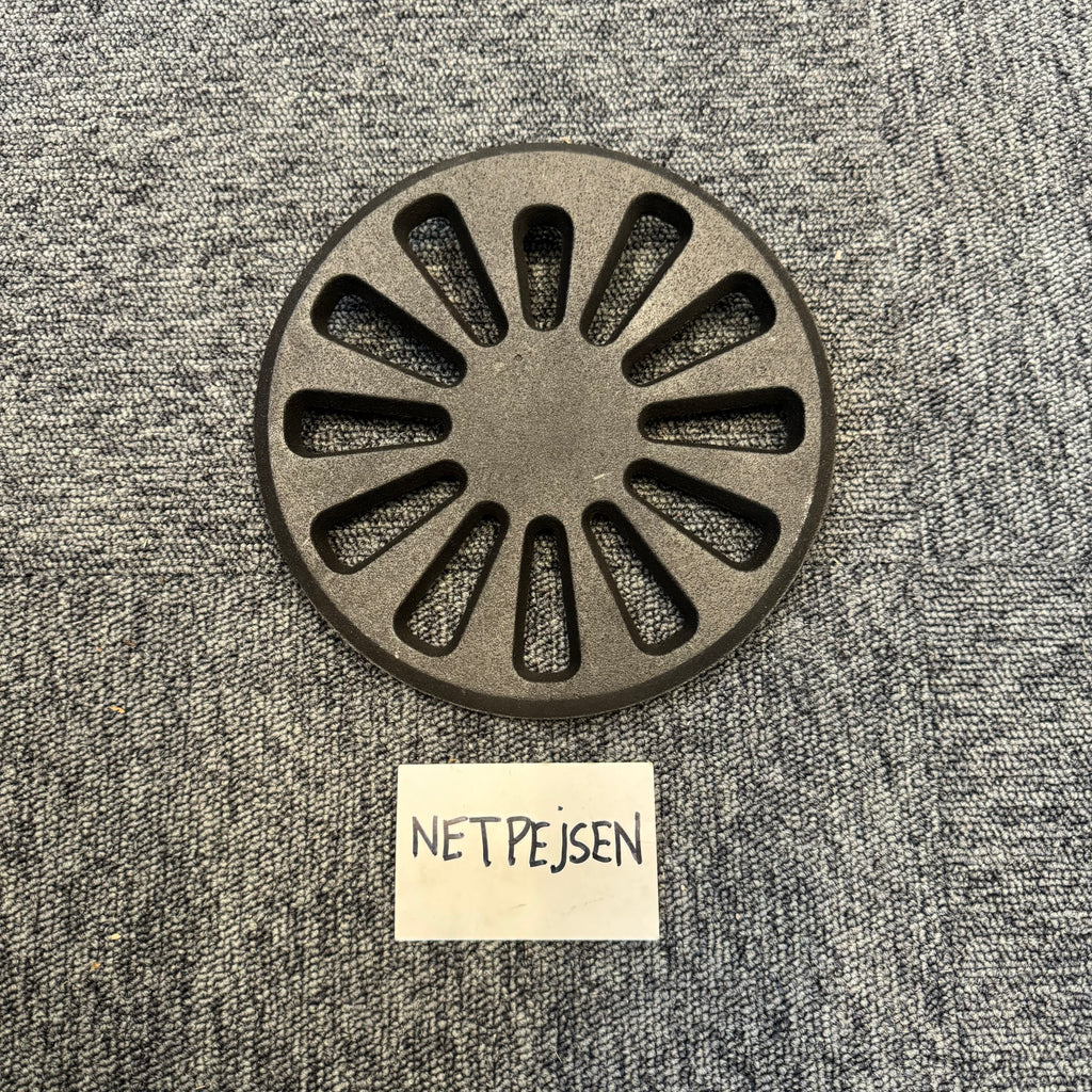 Gallret är tillverkat av gjutjärn , ett klassiskt och slitstarkt material som tål hög värme och säkerställer stabil funktion i många år.