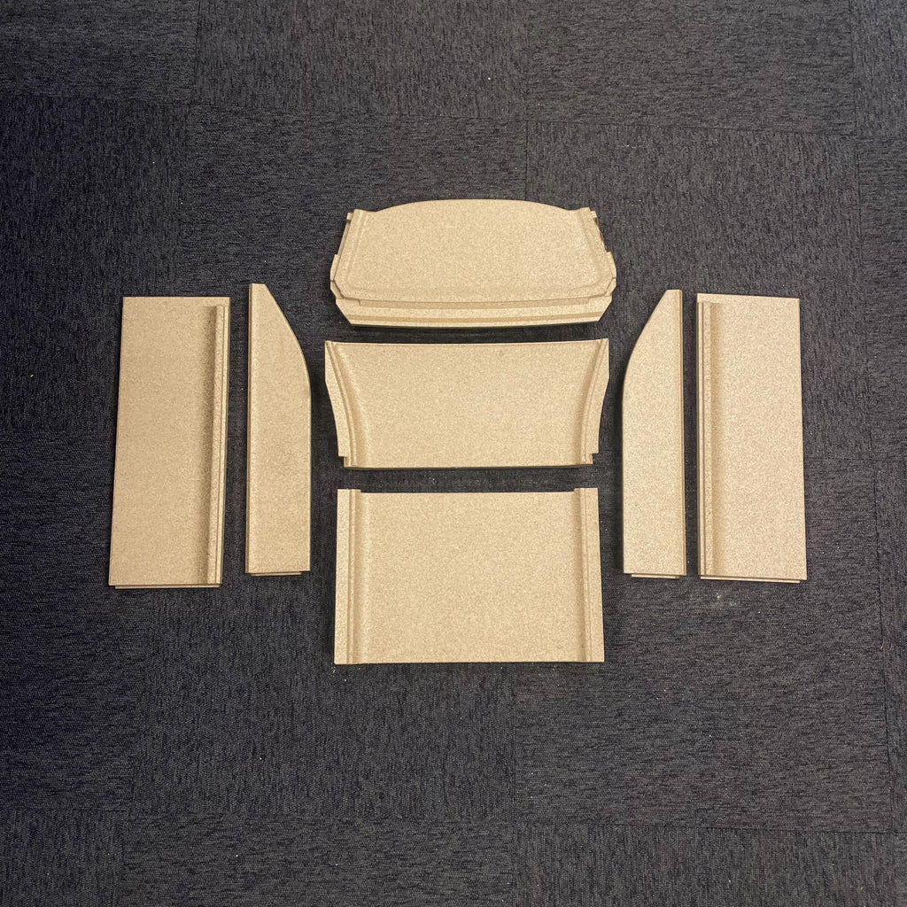 Skamol-set är tillverkade av vermikulit, ett speciellt stengranulat som har pressats ihop under högt tryck. Denna process ger vermikulitskivorna deras unika egenskaper som brandsäkerhet och värmehållning. Skivorna ser ut som spånskivor och kan vara lite ömtåliga. Eftersom materialet är poröst bör det hanteras varsamt. Du bör inte kasta ved i förbränningskammaren, eftersom det kan orsaka att skivorna går sönder. Det spelar ingen roll om skivorna har sprickor, men om sprickorna är större än ca 5 mm, eller om bitar av dem går sönder, är det viktigt att byta ut dem.