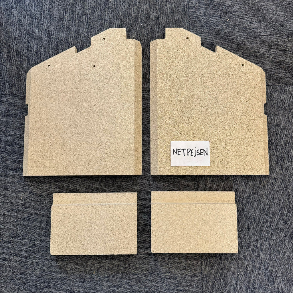 Skamol-set är tillverkade av vermikulit, ett speciellt stengranulat som har pressats ihop under högt tryck. Denna process ger vermikulitskivorna deras unika egenskaper som brandsäkerhet och värmehållning. Skivorna ser ut som spånskivor och kan vara lite ömtåliga. Eftersom materialet är poröst bör det hanteras varsamt. Du bör inte kasta ved i förbränningskammaren, eftersom det kan orsaka att skivorna går sönder. Det spelar ingen roll om skivorna har sprickor, men om sprickorna är större än ca 5 mm, eller om bitar av dem går sönder, är det viktigt att byta ut dem.