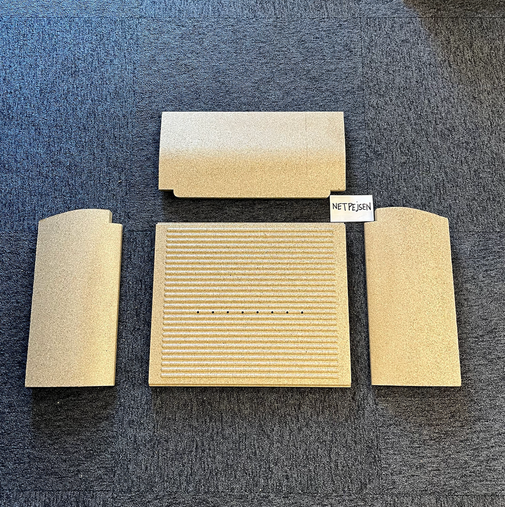 Skamol-set är tillverkade av vermikulit, ett speciellt stengranulat som har pressats ihop under högt tryck. Denna process ger vermikulitskivorna deras unika egenskaper som brandsäkerhet och värmehållning. Skivorna ser ut som spånskivor och kan vara lite ömtåliga. Eftersom materialet är poröst bör det hanteras varsamt. Du bör inte kasta ved i förbränningskammaren, eftersom det kan orsaka att skivorna går sönder. Det spelar ingen roll om skivorna har sprickor, men om sprickorna är större än ca 5 mm, eller om bitar av dem går sönder, är det viktigt att byta ut dem.