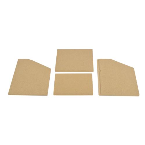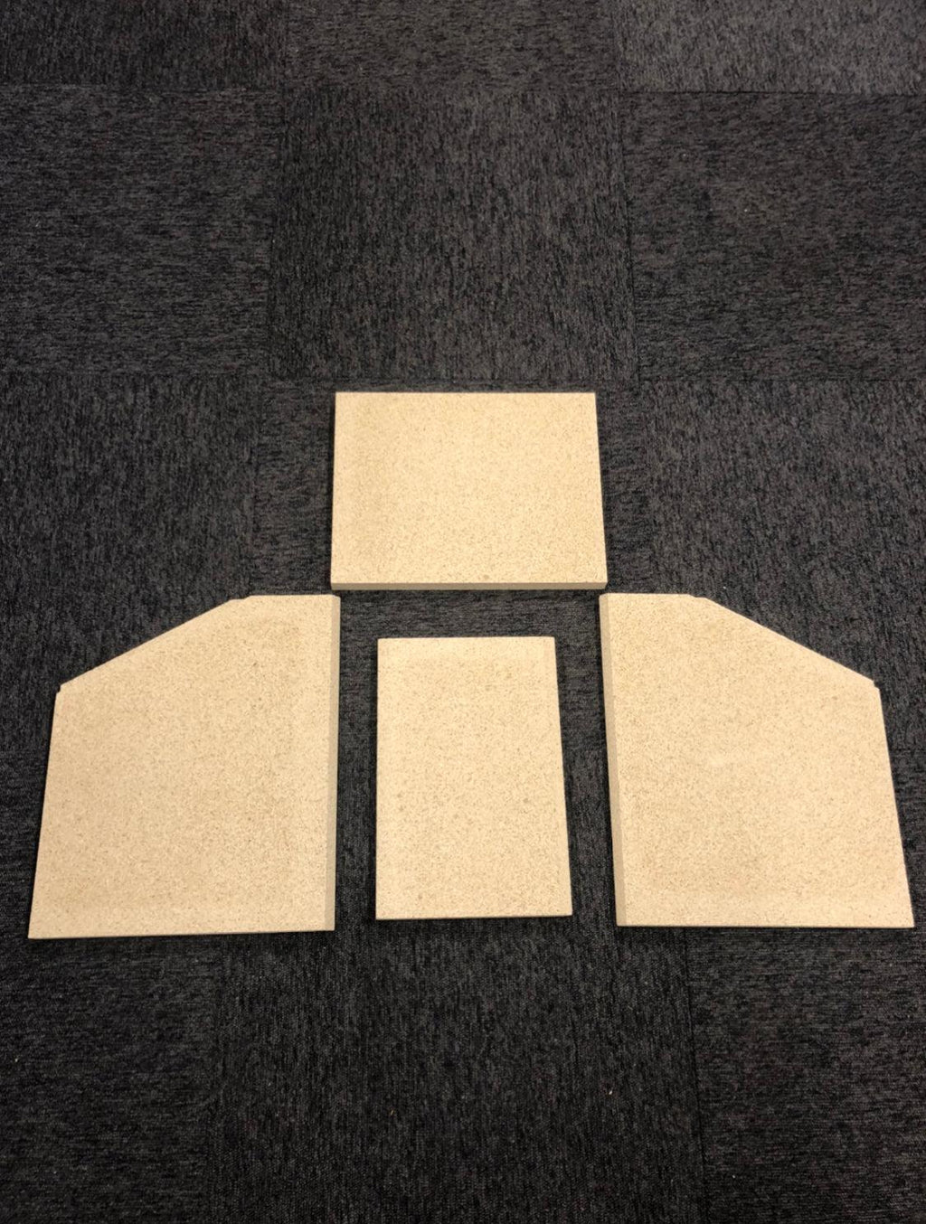 Skamol-set är tillverkade av vermikulit, ett speciellt stengranulat som har pressats ihop under högt tryck. Denna process ger vermikulitskivorna deras unika egenskaper som brandsäkerhet och värmehållning. Skivorna ser ut som spånskivor och kan vara lite ömtåliga. Eftersom materialet är poröst bör det hanteras varsamt. Du bör inte kasta ved i förbränningskammaren, eftersom det kan orsaka att skivorna går sönder. Det spelar ingen roll om skivorna har sprickor, men om sprickorna är större än ca 5 mm, eller om bitar av dem går sönder, är det viktigt att byta ut dem.