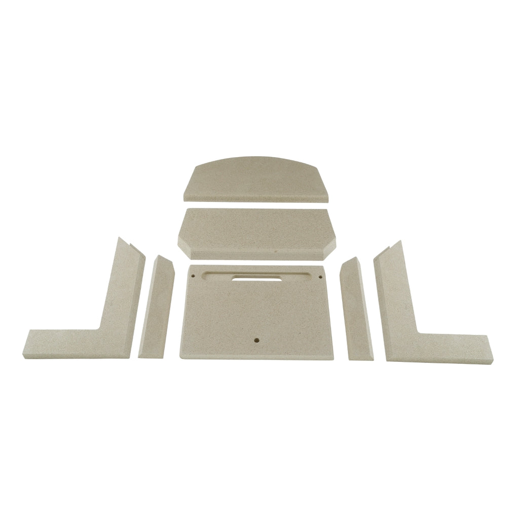 Skamol-set är tillverkade av vermikulit, ett speciellt stengranulat som har pressats ihop under högt tryck. Denna process ger vermikulitskivorna deras unika egenskaper som brandsäkerhet och värmehållning. Skivorna ser ut som spånskivor och kan vara lite ömtåliga. Eftersom materialet är poröst bör det hanteras varsamt. Du bör inte kasta ved i förbränningskammaren, eftersom det kan orsaka att skivorna går sönder. Det spelar ingen roll om skivorna har sprickor, men om sprickorna är större än ca 5 mm, eller om bitar av dem går sönder, är det viktigt att byta ut dem.