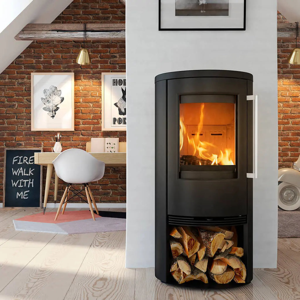 Denna vedeldade kamin är utformad för att ge imponerande värmeprestanda och hålla ditt hem varmt även under de kallaste månaderna. Förbränningen styrs enkelt med det diskreta kontrollhandtaget som sitter under gjutjärnsluckan.