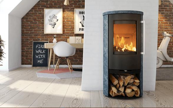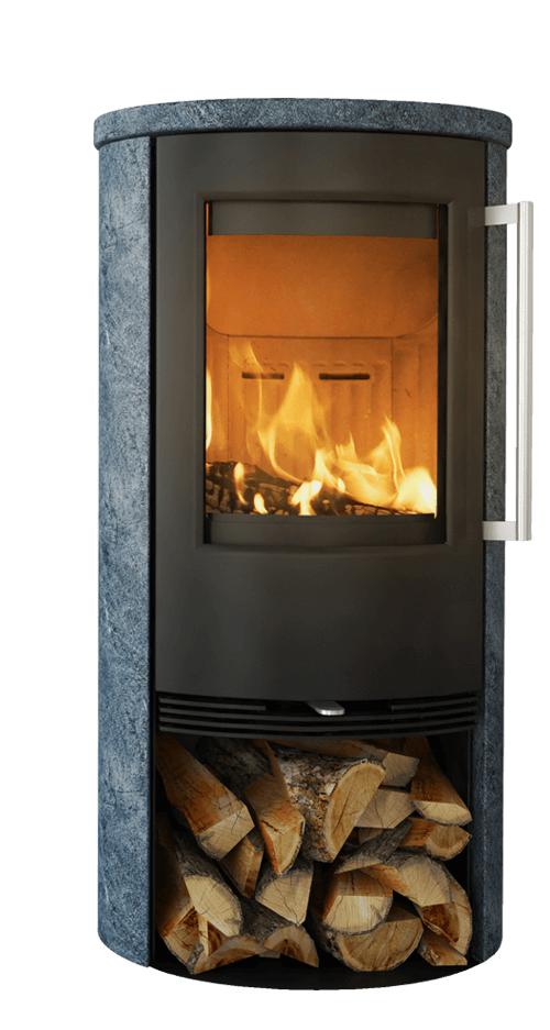 Täljstenens unika värmelagrande egenskaper kombineras med de mjuka formerna hos den eleganta och tidlösa gjutjärnsluckan, som stängs med två värmebeständiga magneter.