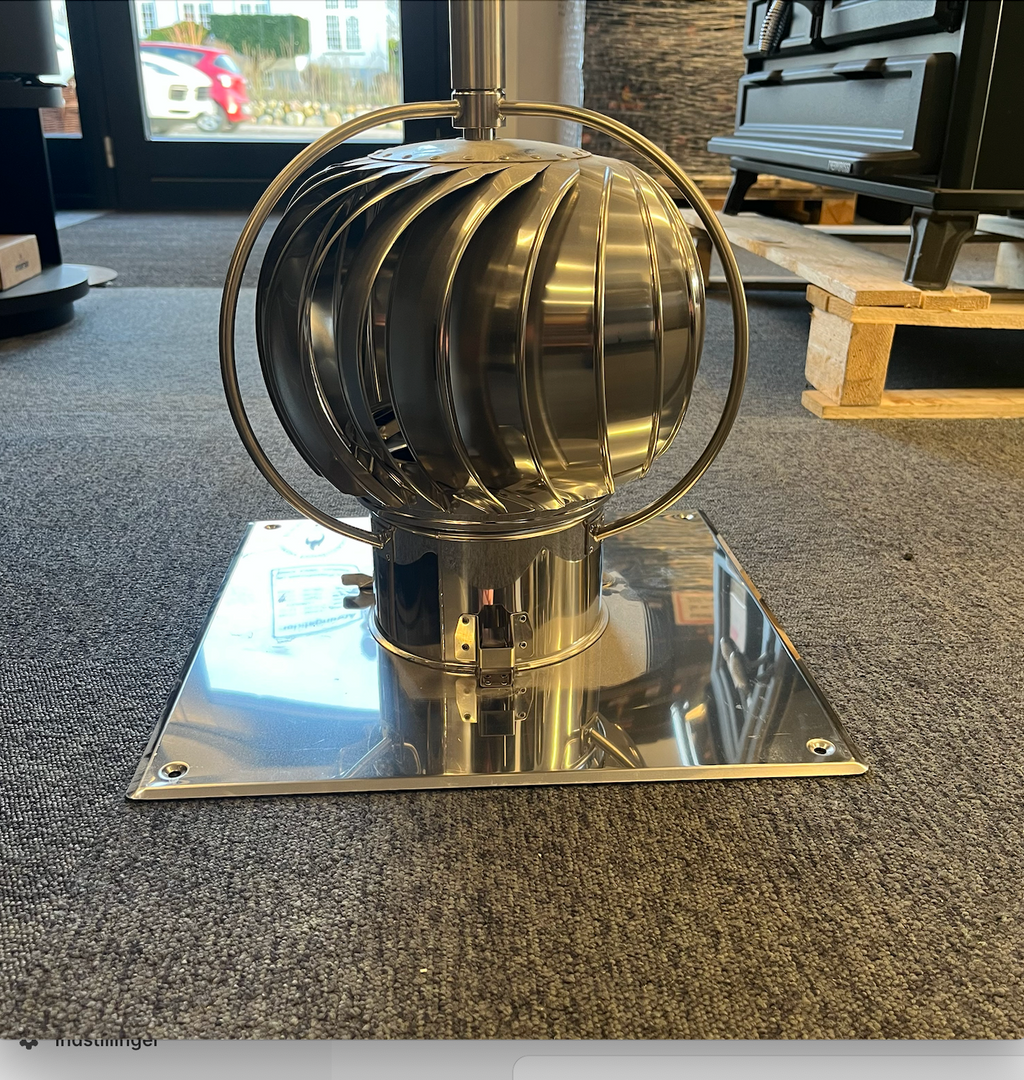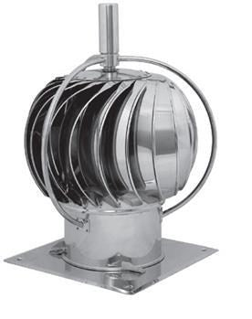 Turbowent för tegelskorstenar med en förbättrad rotor som använder vindens kraft för att öka draget i skorstenen och förhindra att rök tränger in. Lagren är placerade ovanför rotorn.